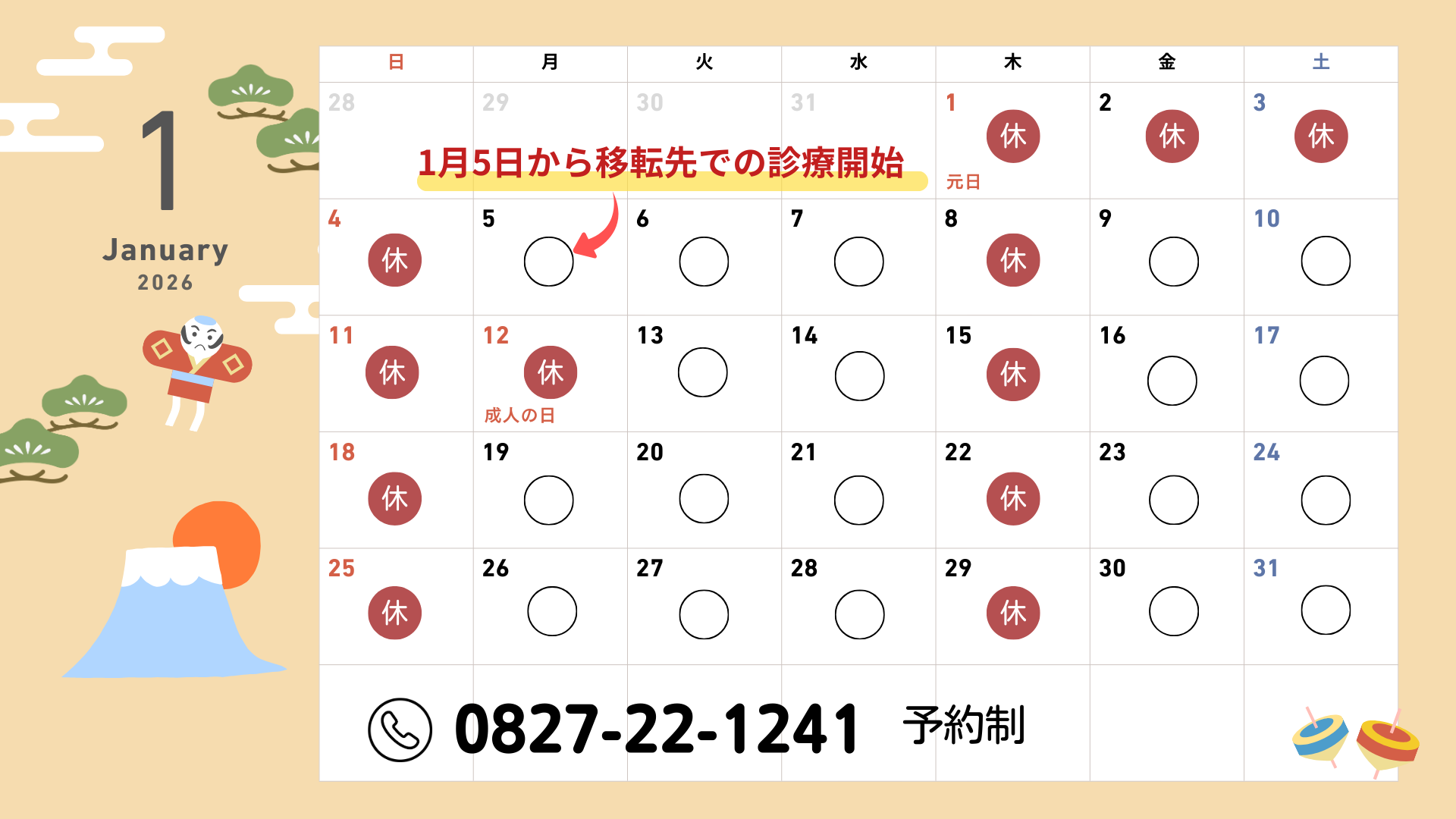 1月の休診日のお知らせ